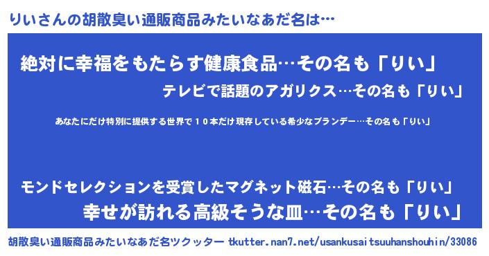 意味不明あだ名 | 『住所不定無職りい(98歳)』『永久保存りい』 |