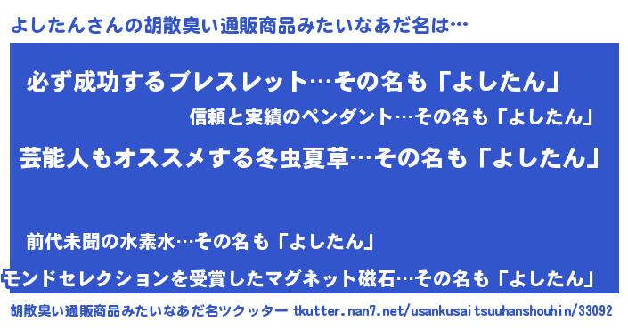 | ヒーロー風カッコイイあだ名 | 『究極戦士ヨシタン』『スーパーヨシタン』 |