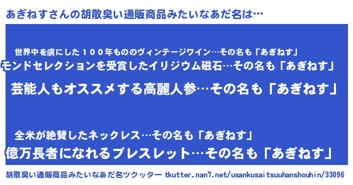 | 意味不明あだ名 | 『自称あぎねす』『ペロリンあぎねす』 |