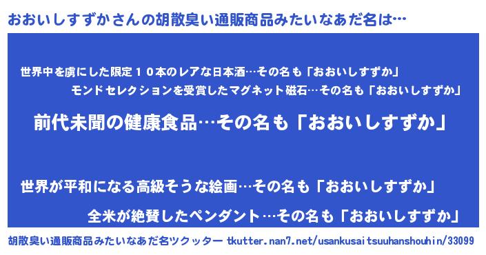 | 意味不明あだ名 | 『永久保存おおいしすずか』 |