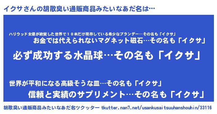 イクサさんの胡散臭い通販商品みたいなあだ名をツクッター!