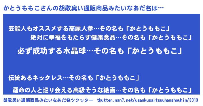 | 肩書あだ名 | 『かとうももこ店長』『かとうももこ閣下』 |