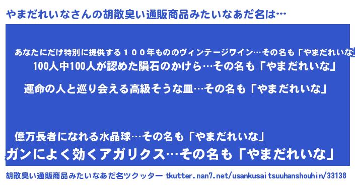 | ヘコむあだ名 | 『レバニラ』『やまっふぃ~』 |