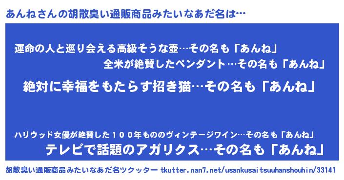 あんねさんの胡散臭い通販商品みたいなあだ名をツクッター!