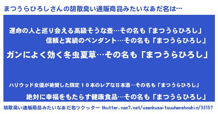 | 恥ずかしいあだ名 | 『マツウラヒロシデラックス』『まつちん』 |