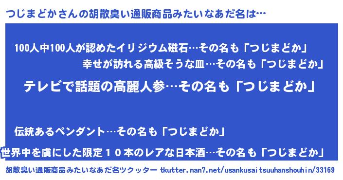 | 意味不明あだ名 | 『自称つじまどか』 |