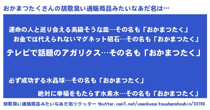 | 意味不明あだ名 | 『自称おかまつたく』 |