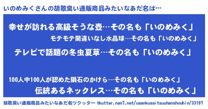 | 肩書あだ名 | 『いのめみく総統』『いのめみく大統領』 |