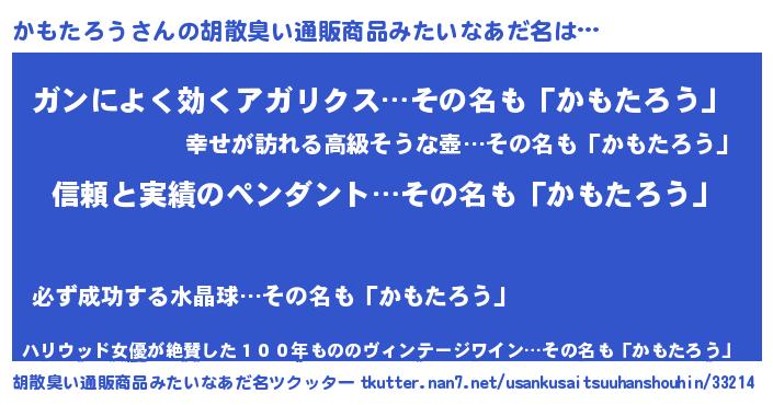 | 欧米人風あだ名 | 『ウサインかもたろう』 |