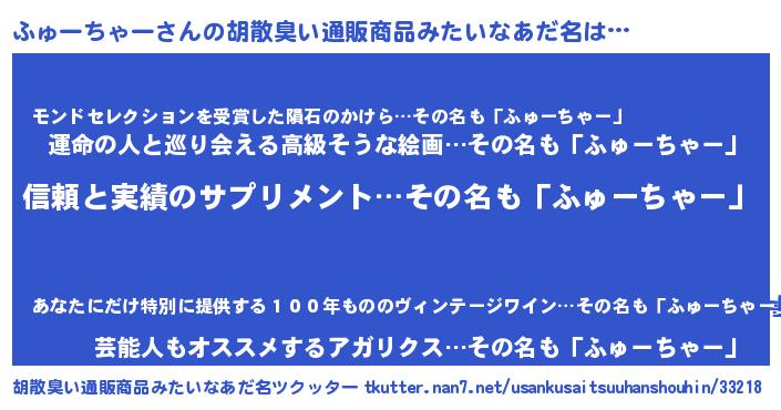 | 意味不明あだ名 | 『とにかく怪しいふゅーちゃー』 |