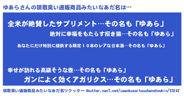 | ヘコむあだ名 | 『ゆあっ子』『ゆあら(笑)』『牛乳』 |