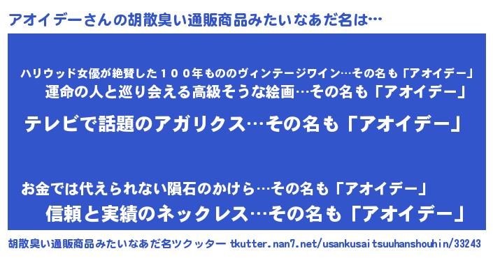 | 意味不明あだ名 | 『自称アオイデー』 |