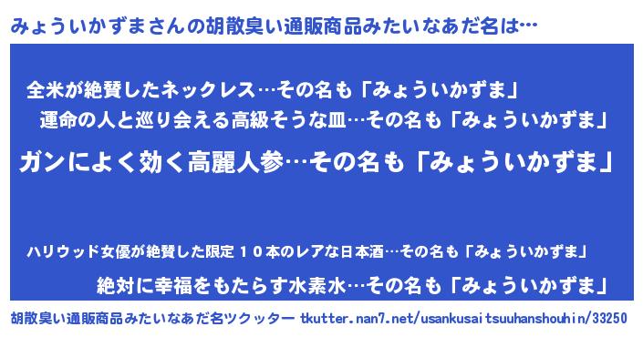 | 意味不明あだ名 | 『自称みょういかずま』 |