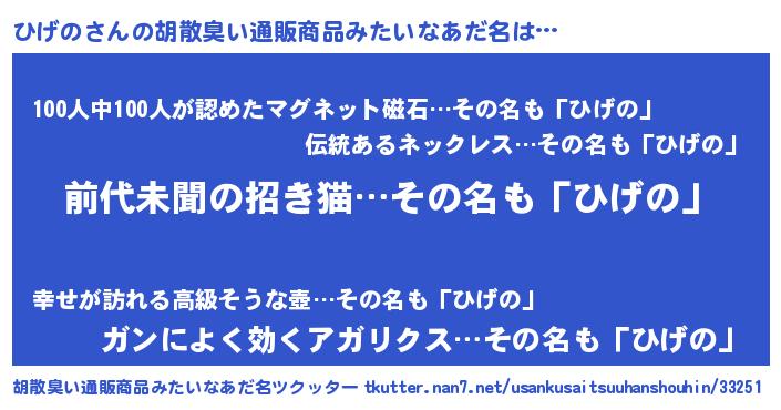 | 意味不明あだ名 | 『永久保存ひげの』『自称ひげの』 |