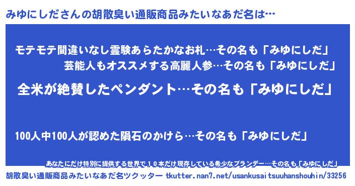 | 意味不明あだ名 | 『とにかく怪しいみゆにしだ』 |