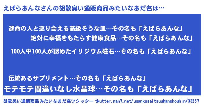| 欧米人風あだ名 | 『えばらあんな・ステッグマイヤー』 |