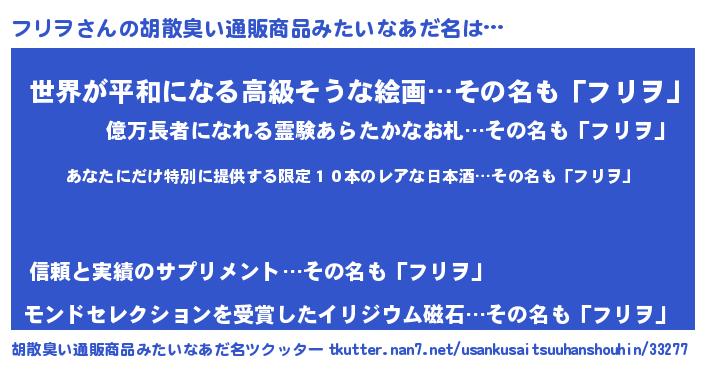 | ヘコむあだ名 | 『酢こんぶ』『フリにー』『フリっぺ』 |