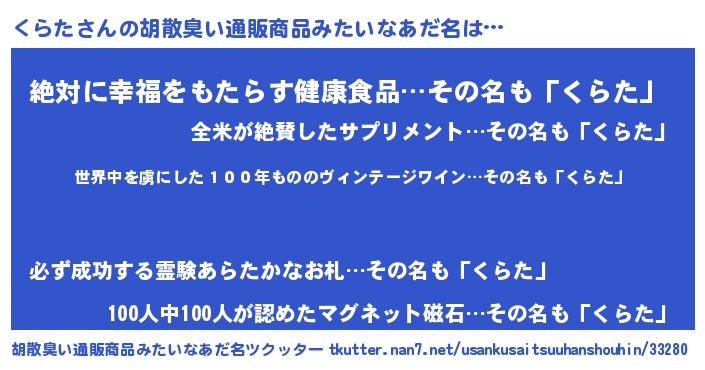 | 意味不明あだ名 | 『住所不定無職くらた(6歳)』 |
