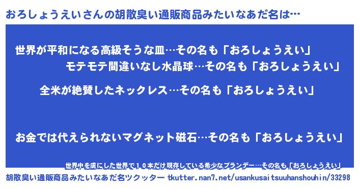 | 意味不明あだ名 | 『とにかく怪しいおろしょうえい』 |