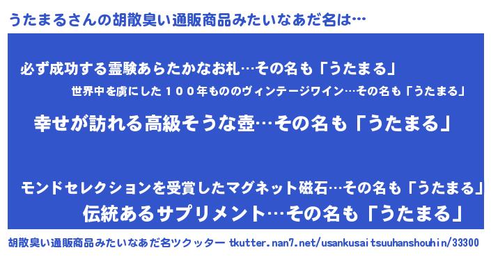 | 男性向けラノベタイトル風あだ名 | 『やはりうたまるの青春ラブコメはまちがっている 』 |