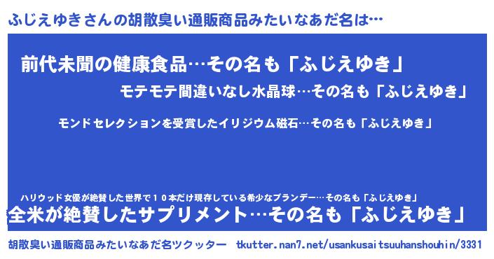 | ヘコむあだ名 | 『ふじえゆき(笑)』『ふじを』 |