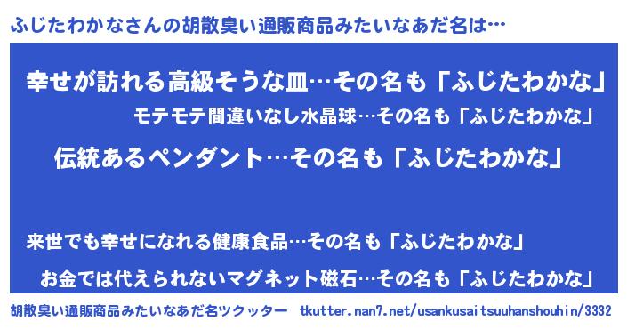 | 意味不明あだ名 | 『とにかく怪しいふじたわかな』 |
