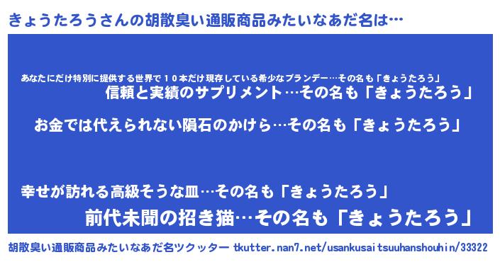 | 意味不明あだ名 | 『眠気覚ましガムきょうたろう味』 |