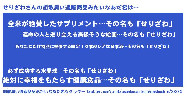 | 意味不明あだ名 | 『住所不定無職せりざわ(43歳)』 |