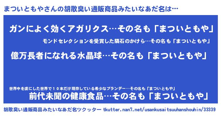 | 肩書あだ名 | 『まついともや店長』『まついともや総統』 |