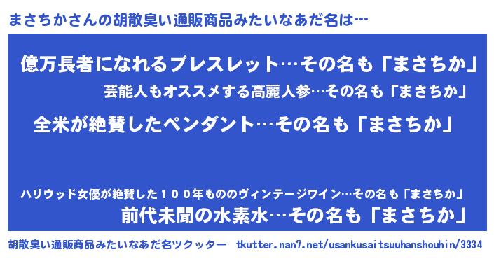 | 意味不明あだ名 | 『とにかく怪しいまさちか』 |