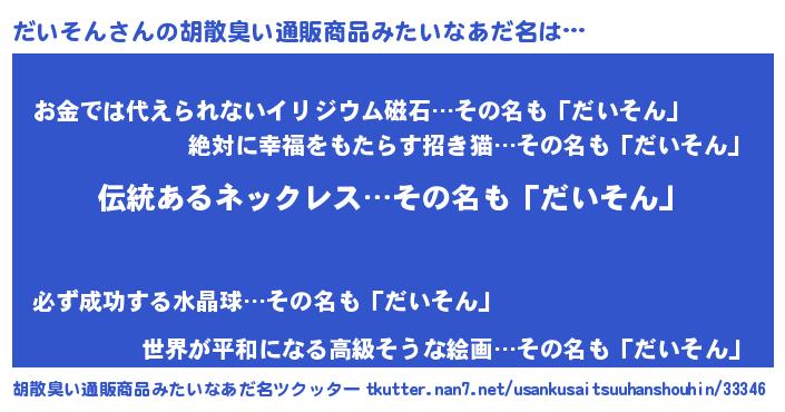 | ヘコむあだ名 | 『だい太郎』『酢こんぶ』『だいもー』 |