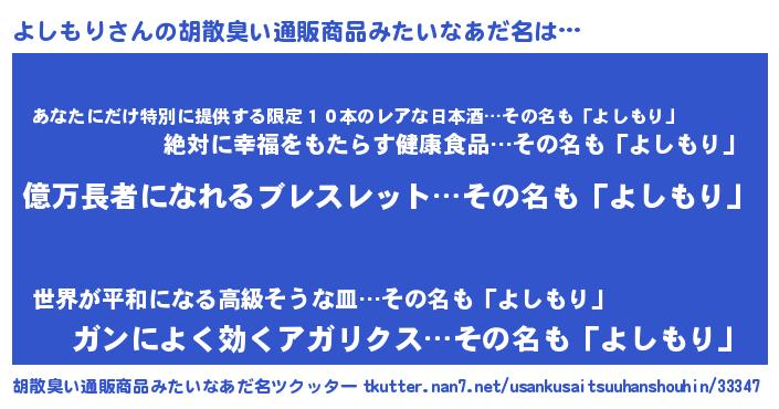 | ヘコむあだ名 | 『よしふぇ~』『よしもり(笑)』 |