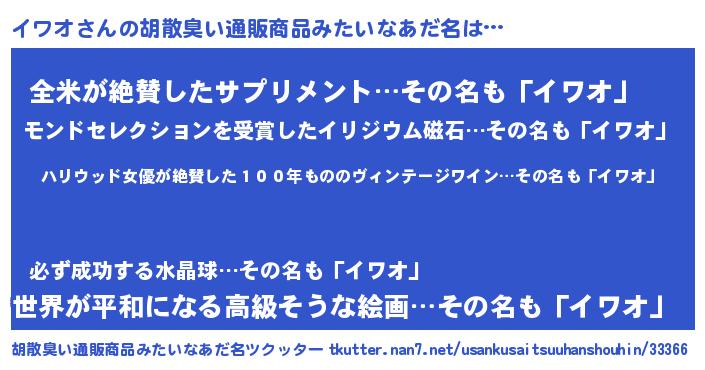 | ヘコむあだ名 | 『イワを』『酢こんぶ』『イワにゅー』 |