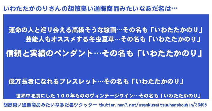 | 伝説のあだ名 | 『孤高の遊び人いわたたかのり』 |