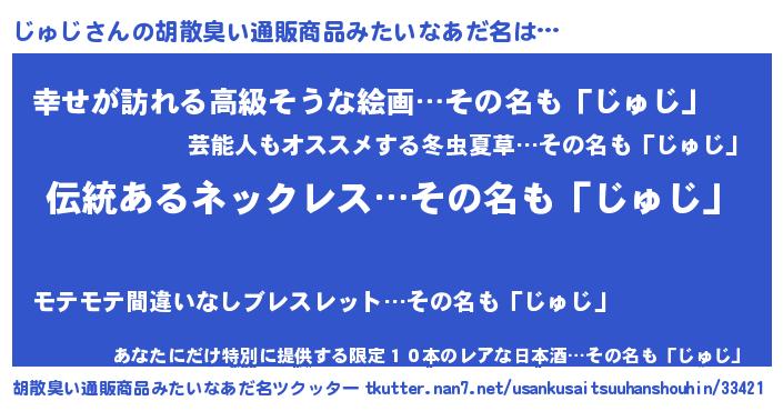 | 意味不明あだ名 | 『とにかく怪しいじゅじ』『自称じゅじ』 |