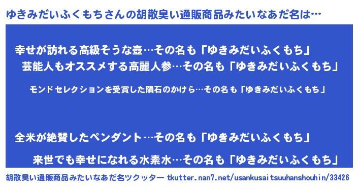 | 欧米人風あだ名 | 『ダニエルゆきみだいふくもち』 |