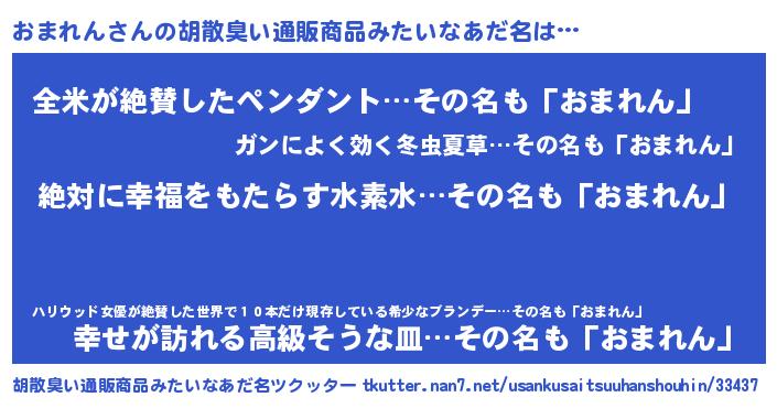 | 男性向けラノベタイトル風あだ名 | 『おまれんという概念が存在しない退屈な世界 』 |