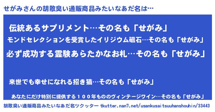 | ヘコむあだ名 | 『せがっふぃ~』『せがを』 |