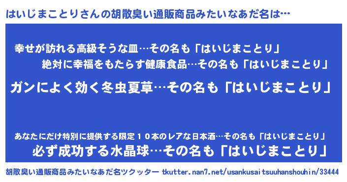 | 女子向けラノベタイトル風あだ名 | 『はいじまことりなんてお断りですっ。』 |
