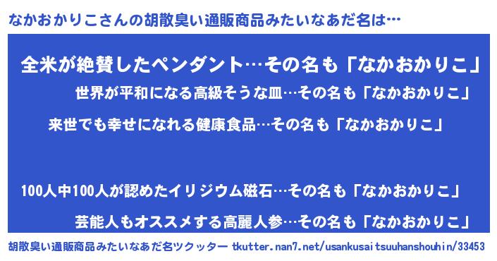 | 男性向けラノベタイトル風あだ名 | 『はたらくなかおかりこさま!』 |