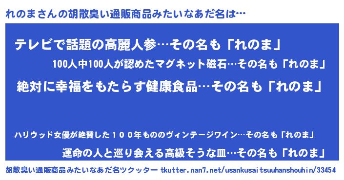 | 意味不明あだ名 | 『永久保存れのま』『自称れのま』 |