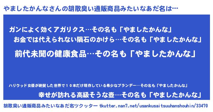 | ヘコむあだ名 | 『やましたかんな(苦笑)』『なまこ酢』 |