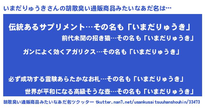| 意味不明あだ名 | 『自称いまだりゅうき』 |