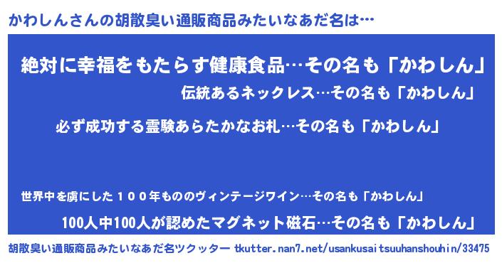 | ヘコむあだ名 | 『かわもー』『かわしん(小並感)』 |