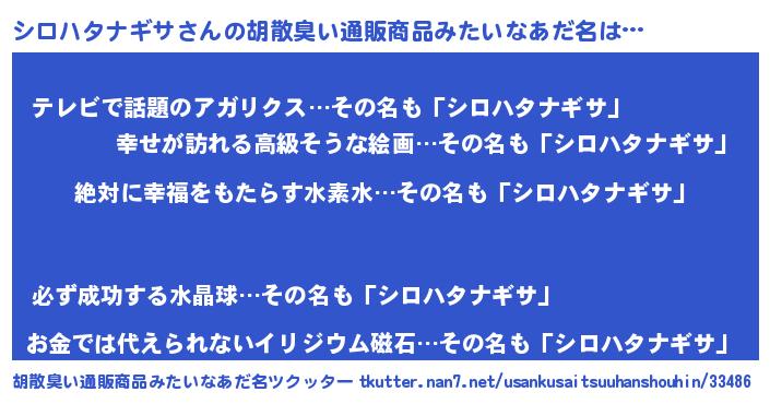 | 意味不明あだ名 | 『永久保存シロハタナギサ』 |