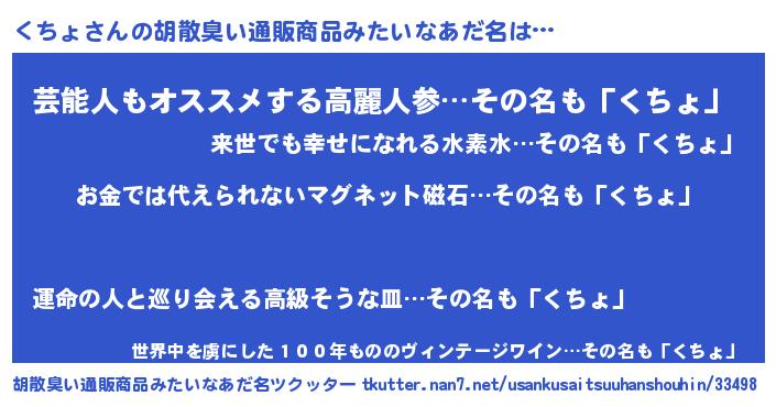 | ヒーロー風カッコイイあだ名 | 『愛の使者くちょ』『最強戦士クチョ』 |