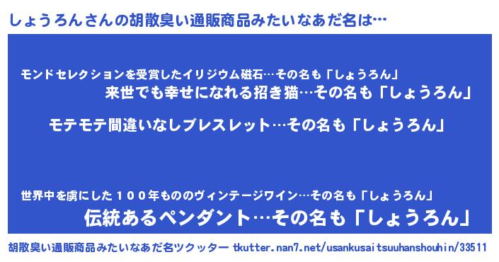 | 意味不明あだ名 | 『ペロリンしょうろん』 |