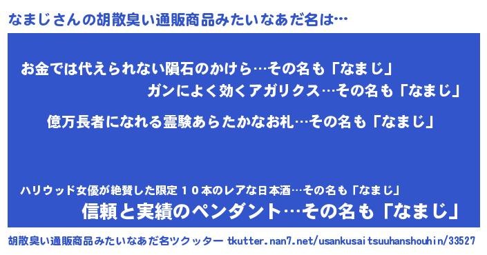 | 欧米人風あだ名 | 『マイケルなまじ』『ダニエルなまじ』 |