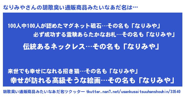 | 意味不明あだ名 | 『とにかく怪しいなりみや』 |