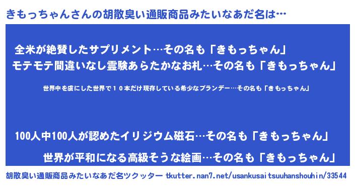 | 欧米人風あだ名 | 『ダレノガレきもっちゃん』 |